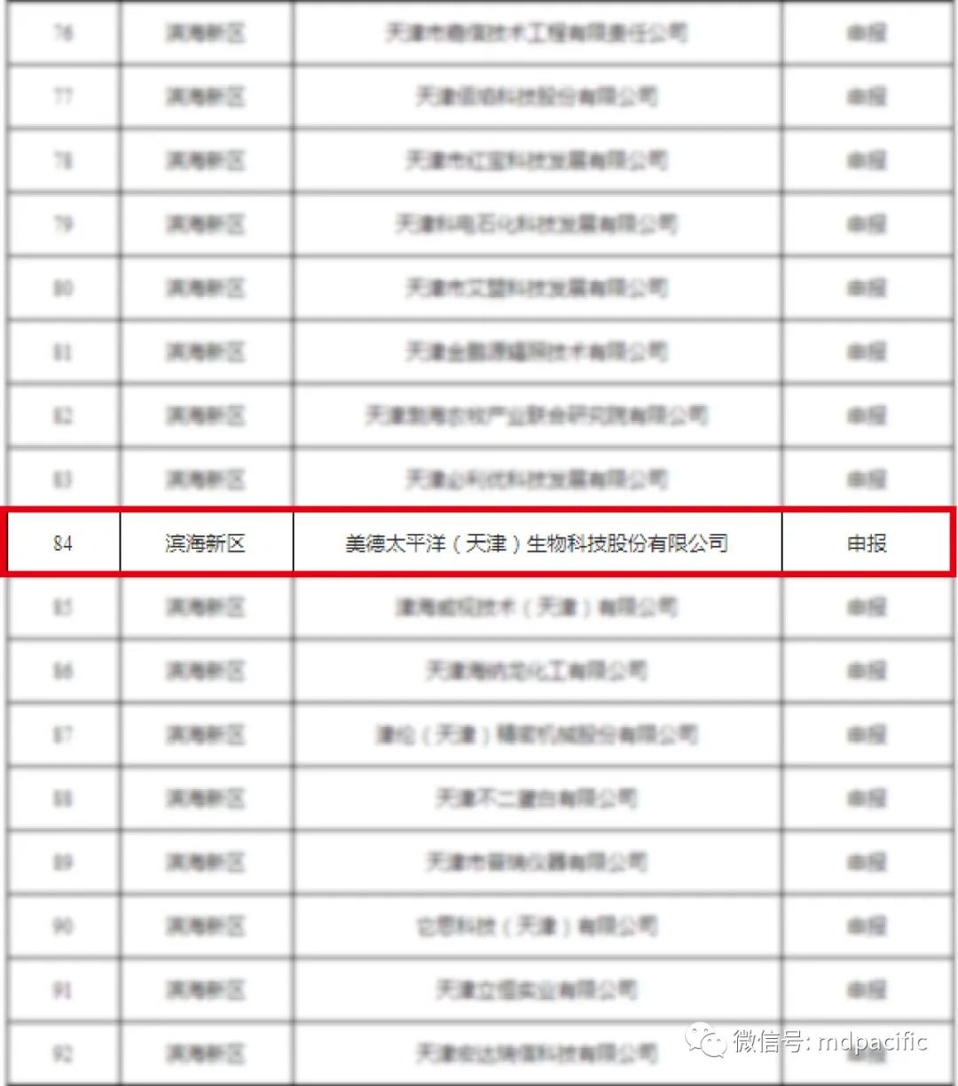 近日,天津市工業(yè)和信息化局對(duì)2023年度天津市“專(zhuān)精特新”中小企業(yè)認(rèn)定情況進(jìn)行了公布,美德太平洋(天津)生物科技股份有限公司憑借過(guò)硬的研發(fā)和創(chuàng)新能力等優(yōu)勢(shì)榮譽(yù)上榜,被認(rèn)定為天津市“專(zhuān)精特新”中小企業(yè)。
