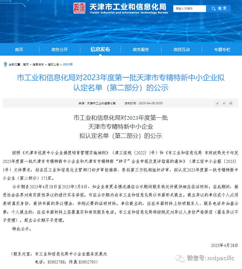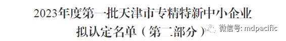 近日,天津市工業(yè)和信息化局對(duì)2023年度天津市“專(zhuān)精特新”中小企業(yè)認(rèn)定情況進(jìn)行了公布,美德太平洋(天津)生物科技股份有限公司憑借過(guò)硬的研發(fā)和創(chuàng)新能力等優(yōu)勢(shì)榮譽(yù)上榜,被認(rèn)定為天津市“專(zhuān)精特新”中小企業(yè)。
